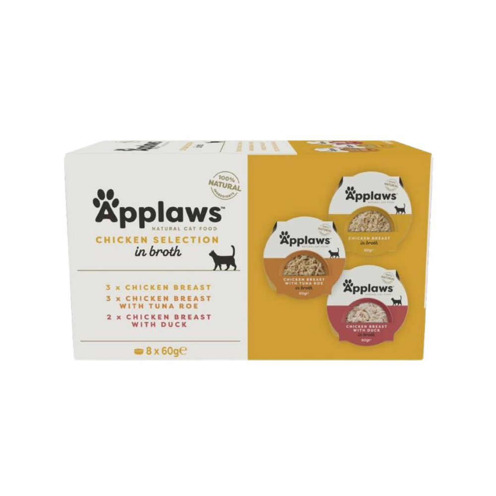 Applaws Chicken Selection Multipack 8×60g is a variety pack of 100% natural complementary wet food for adult cats. It includes three chicken-based flavoured pots: