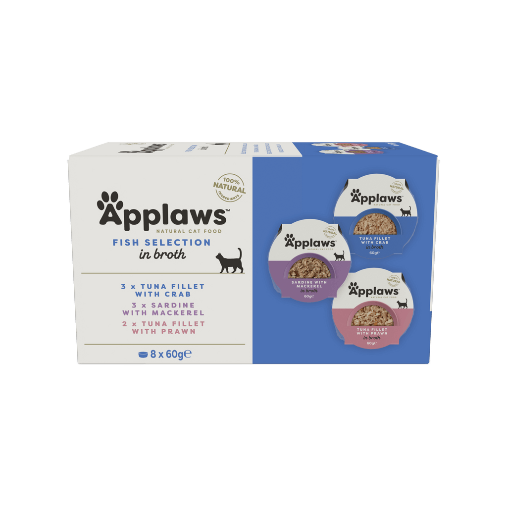 Applaws Fish Selection 8×60g is a multipack of 100% natural wet food pots for adult cats. Includes: