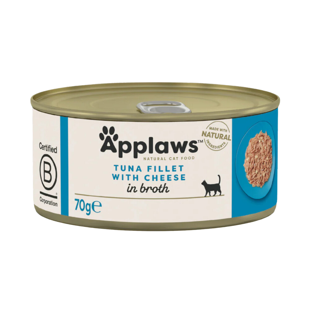 Applaws Tuna Fillet with Cheese in Broth 70g is a natural complementary wet food made for adult cats. Crafted with 70% tuna fillet, fish broth, and 5% cheese, it delivers high-quality protein and irresistible flavour. Free from artificial colours, preservatives or flavours. Naturally rich in taurine and omega-3 fatty acids, this meal supports healthy skin, a glossy coat, and lean muscle. Perfect as an occasional treat or topper to your cat's regular diet.