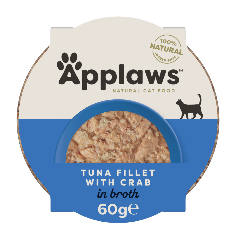 Applaws Tuna Fillet with Crab in Broth 60g is a 100% natural complementary wet food for adult cats. Made with 56% tuna fillet, fish broth, rice, and 4% crab. Free from additives, artificial flavours, or preservatives. Rich in high-quality protein, moisture, and omega-3s, it supports lean muscle, healthy skin & coat, hydration, and gentle digestion. Serve at room temperature.