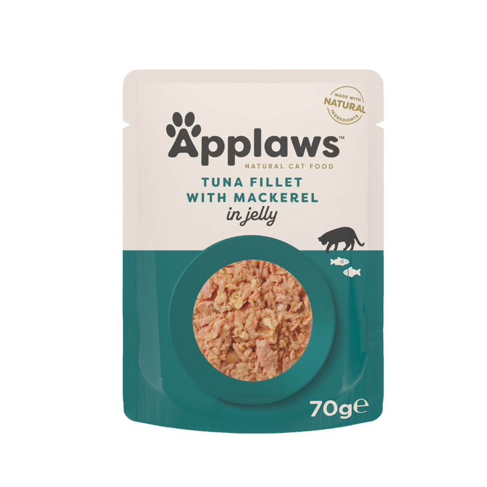 Applaws Tuna Fillet with Mackerel in Jelly 70g is a natural complementary wet food made for adult cats. Made with 55% tuna fillet, 5% mackerel, plus rice flour and a vegetable gelling agent. Free from artificial colours, flavours or preservatives. Rich in protein, omega-3 acids, and moisture, it supports healthy skin & coat, lean muscle mass, and hydration. Perfect as a tasty meal or topper.