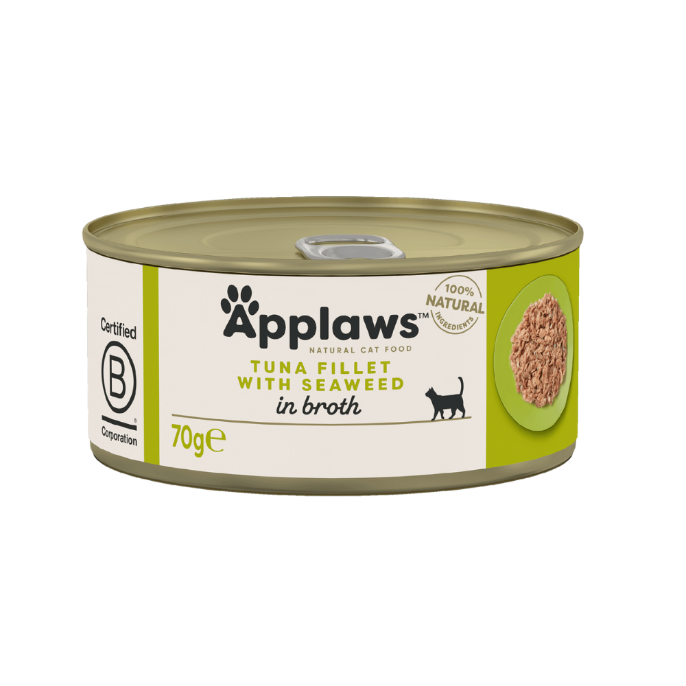 Applaws Tuna Fillet with Seaweed in Broth 70g is a 100% natural complementary wet food for adult cats. Made with just four simple ingredients—Tuna Fillet, Fish Broth, Seaweed, and Rice. Free from artificial colours, flavours, preservatives, and carrageenan. Naturally rich in omega-3s and taurine, this recipe supports healthy skin & coat, hydration, and overall wellbeing. Serve at room temperature alongside complete dry food.