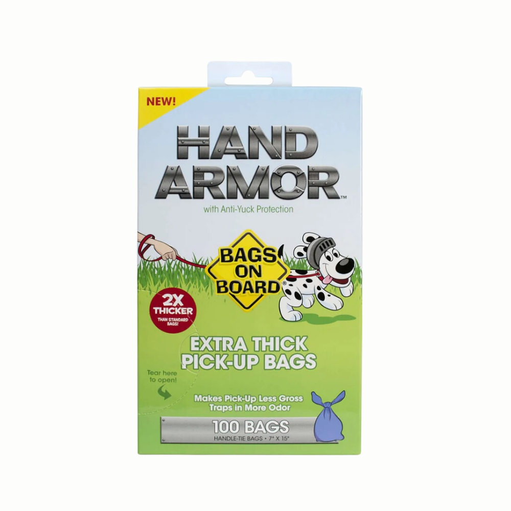 Tackle messes with confidence using Bags on Board Hand Armor Waste Bags 100 pcs, engineered for durability, protection, and odor control. These extra-thick bags (2× thicker than standard) are built to shield your hand from unpleasant sensations and reduce leaks, making cleanups easier and cleaner. Each bag measures 7 in × 15 in (17.8 × 38.1 cm), giving ample space to handle waste from dogs of various sizes. With integrated handle ties for quick, secure closure, they’re perfect for daily walks, yard use, or travel. Designed to open easily with one hand and trap more odor inside, this pack puts “armor” between you and your pet’s business while maintaining convenience.