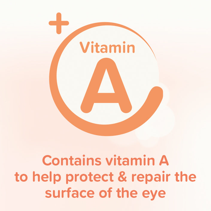 Contains vitamin A (retinol), purified water, and a gentle gel base designed to retain moisture and provide protective relief for sensitive eyes.
