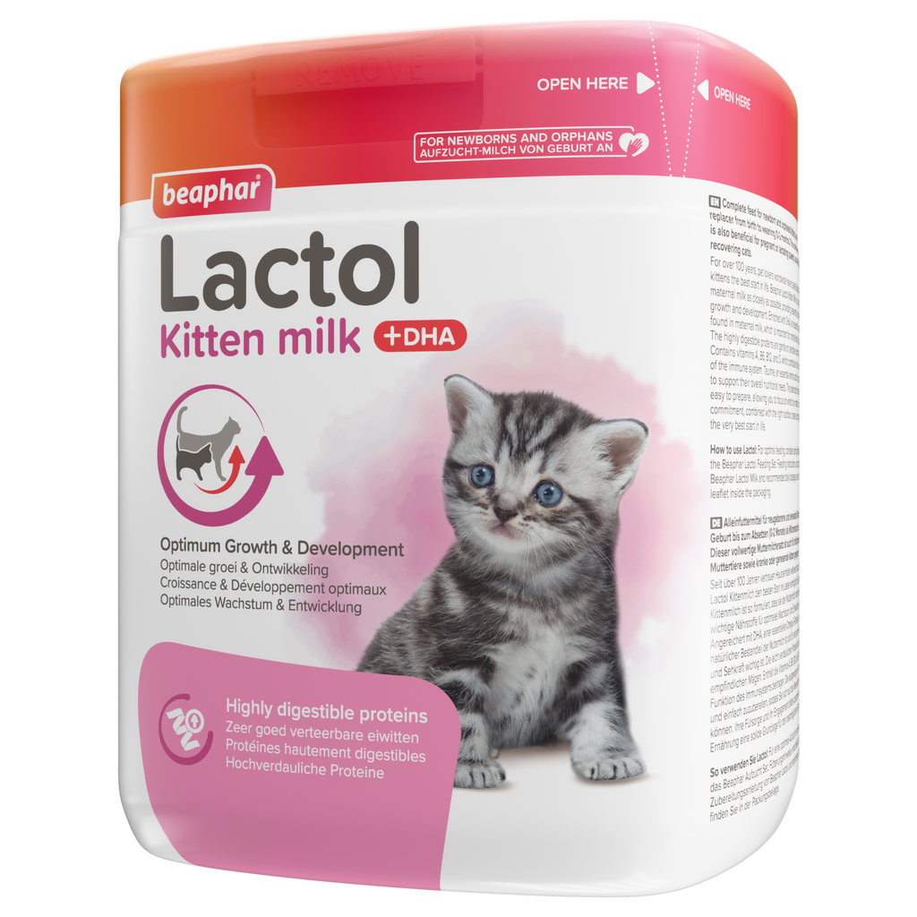 Beaphar Lactol Kitten Milk Replacer is a complete milk formula specially developed for newborn, orphaned, or weak kittens. It closely matches a mother cat’s milk with highly digestible whey proteins, enriched with DHA, taurine, vitamins, and minerals to promote healthy growth, digestion, vision, brain, and immune development.