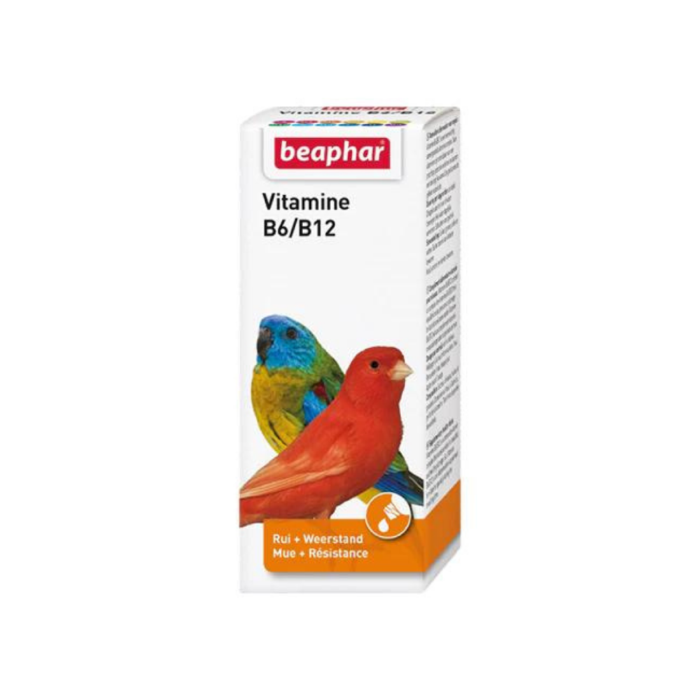 Beaphar Vitamine B6/B12 Birds 50mlThis nutritional supplement contains vitamins B6 and B12, which are essential for the health of bird feathers, as they play an important role in promoting feather growth and maintaining their shine and strength.By using Beaphar Vitamin B6/B12 regularly, you can provide your birds with the necessary nutritional support to ensure they receive all the nutrients necessary for healthy feathers.