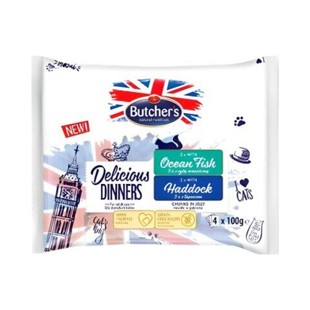 Butcher'S Delicious Dinners Food For Cats Chunks In Jelly With Ocean Fish/Haddock 4X100G