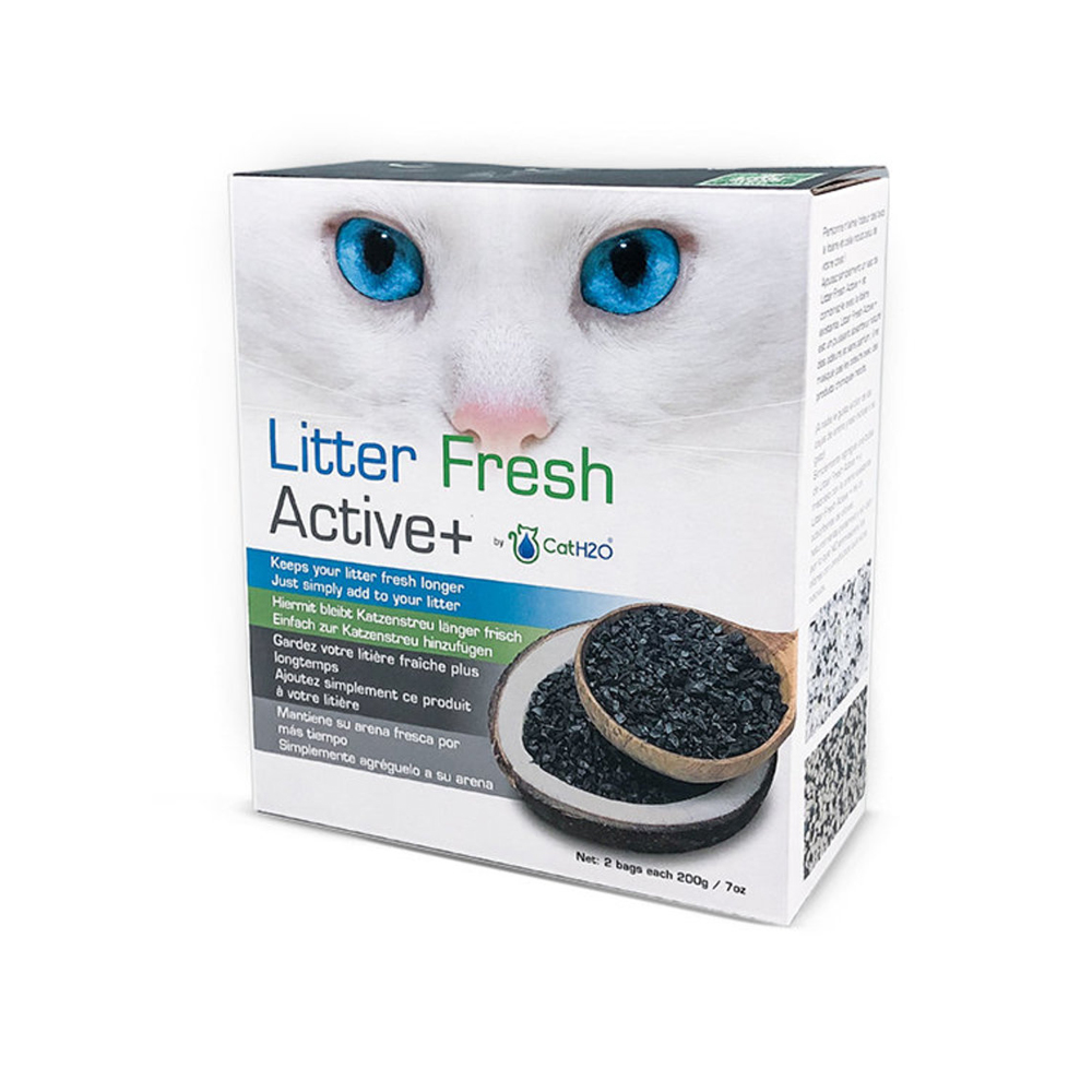 CatH2O LITTER FRESH ACTIVE+It helps you control the odor of your litter through coconut-based activated carbon, which is considered an odor absorbent (10 times stronger than regular activated carbon).Suitable for use with all types of cat litterAdd just one bag to your cat's litter boxChemical-free, safe and environmentally friendlyEach package contains two sachets, each 200 grams