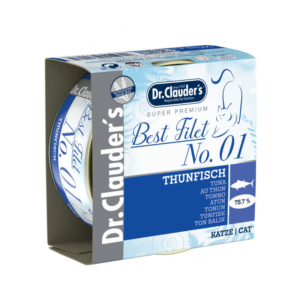 Dr. Clauder’s Best Filet No.1 Tuna for Cats 70g is a premium grain-free wet food made with tender tuna fillet for natural, protein-rich nutrition. With over 75% tuna, it delivers high-quality animal protein to support lean muscles, energy, and overall vitality. Low in fat and free from preservatives or flavor enhancers, this recipe is gentle on digestion while providing a soft texture and irresistible taste that cats love.