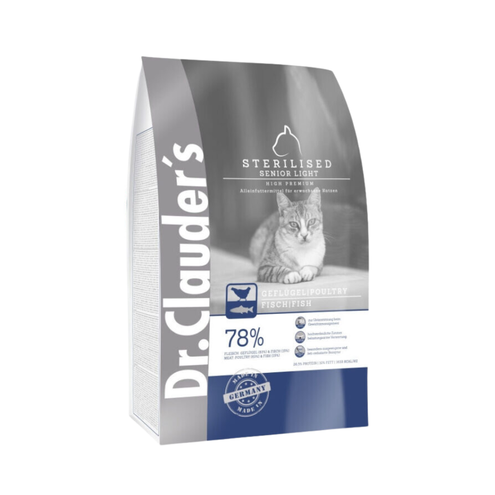 Dr. Clouders High Premium Dry Cat Food for Sterilized Adult Cats Chicken & Fish 1.5kgSpecially designed for sterilized and senior cats, it provides special nutritional care to control weight and support overall health. It contains natural ingredients and dietary fiber to promote digestive health, plus Omega 3 & 6 to support healthy skin and coat. This light recipe is high in protein to support muscle, and helps maintain an ideal weight without added preservatives or artificial flavors.