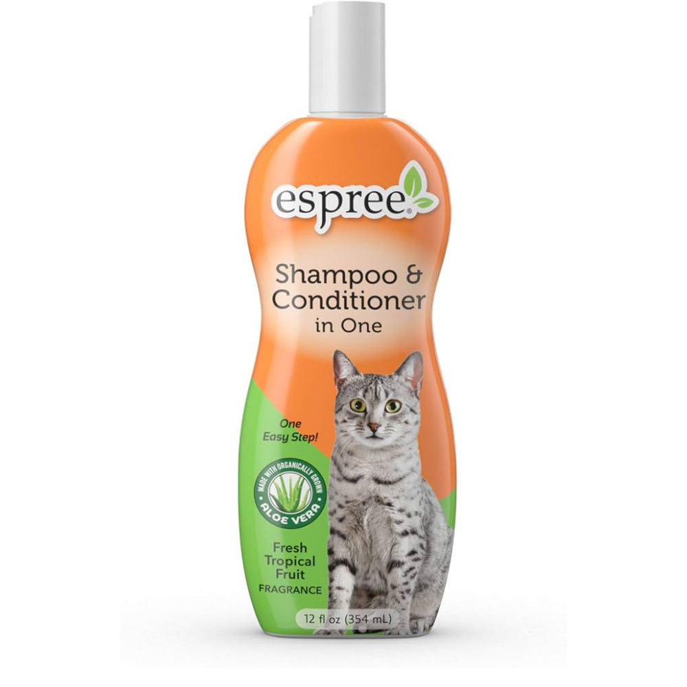 Espree Sha & Con in 1 Fruit for Cats 354ml-1004735Specially designed to moisturize your pet's fur in a gentle yet effective way. It can be used regularly as part of a grooming routine to keep the coat clean and healthy. It can also help soothe irritated skin and relieve itching and irritation.