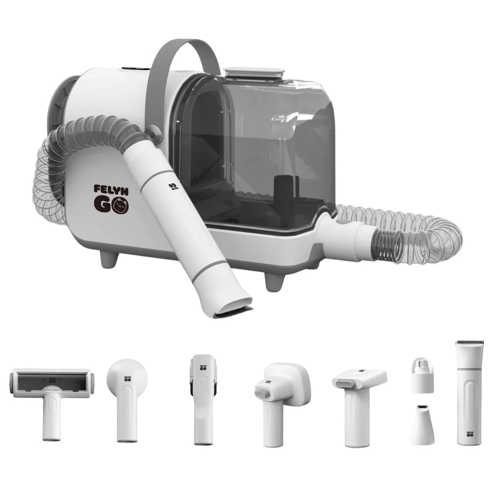 Meet the FELYN GO 6-in-1 Pet Grooming Vacuum Kit—the all-in-one grooming system that trims, desheds, and cleans while it vacuums, so loose hair goes into the dust cup instead of all over your home. With a touch control panel, adjustable suction, and 6 practical attachments, it turns grooming day into a quick, calm routine for you and your pet.