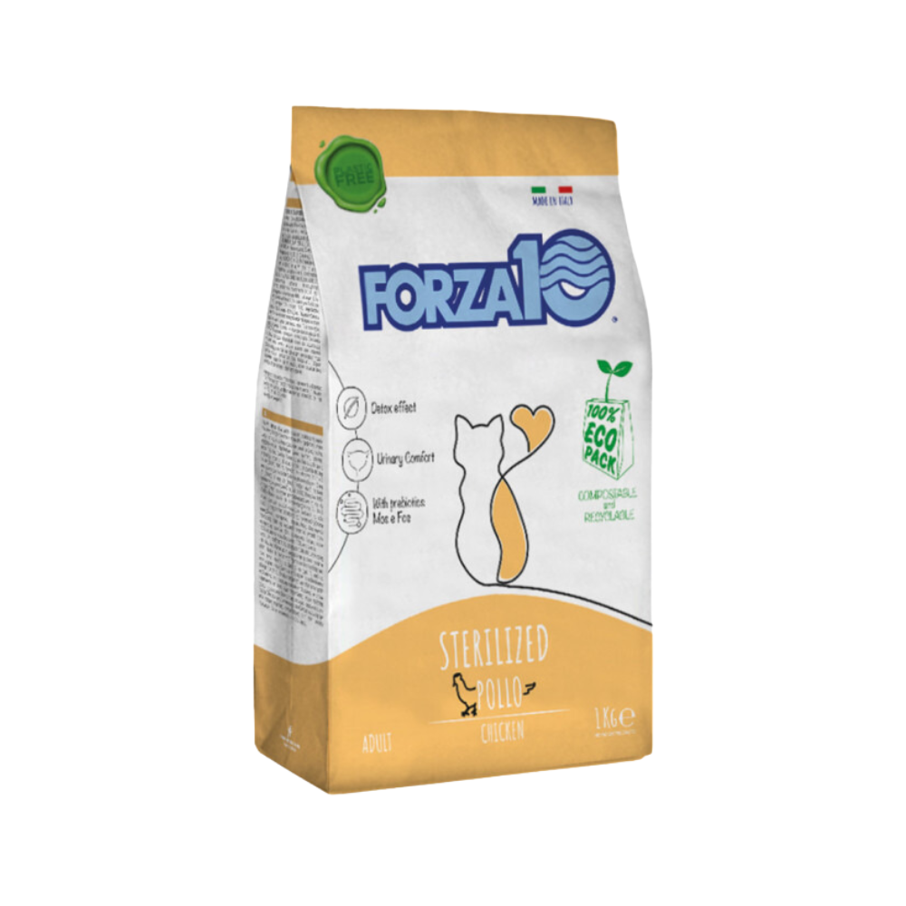 Forza10 Cat Dry Food Sterilized Chicken 1KgA complete meal specially designed to support the health of sterilized cats, containing high-quality protein from chicken to promote healthy digestion and support an ideal weight. Suitable for all adult cats, easy to digest and rich in essential nutrients.
