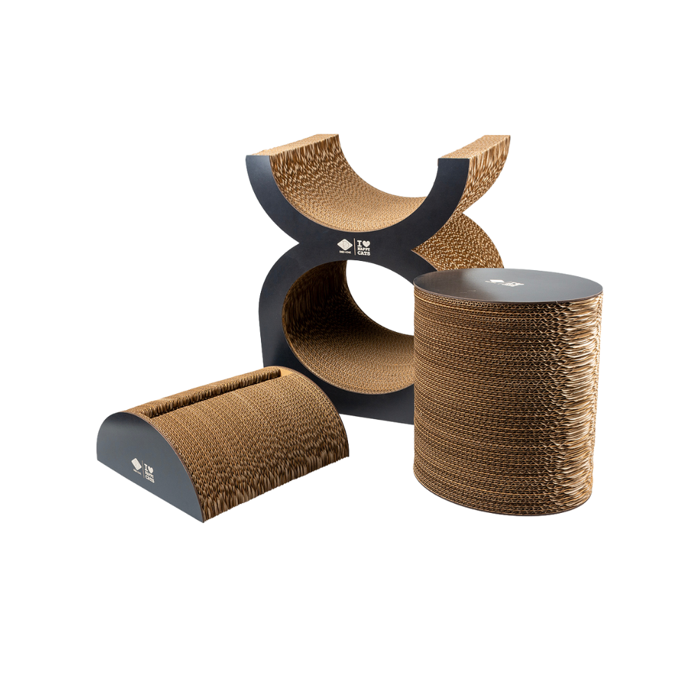 Made from sturdy corrugated cardboard, it comes in a crisp shape that's perfect for resting and scratching. It helps cats deposit their pheromones and relieve stress. Includes two pieces that can be placed in different places in your home.