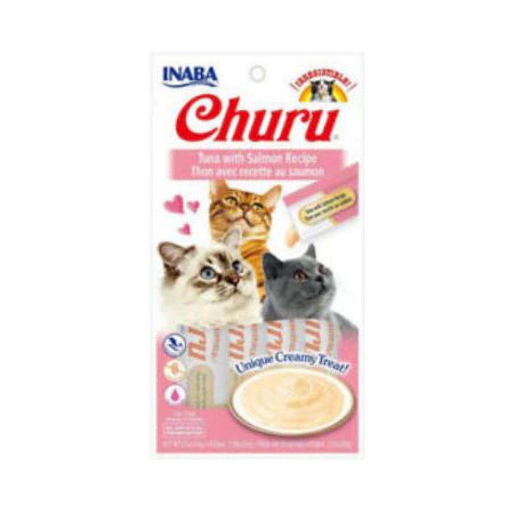 Every Inaba product is made with yummy high-quality ingredients, including farm-raised chicken and/or natural wild-caught tunaEach delicious, creamy Churu tube contains 91% moisture and only six calories (a tenth of the calories of traditional dry cat treats), which makes it a healthy snack you can feel good about feedingYour feline friend is important to us, which is why we've kept things like grains, preservatives, artificial colors, and carrageenan out of our cat treats, but we added things like Taurine to help with their overall healthThese lickable purée meat tubes for cats were designed to be fed by hand as an interactive way to spend time with your feline, but you can use them as a wet/dry cat food topper or as a way to disguise medicationAvailable in nineteen savory flavors, cats of all stages (kitten to senior) will be able to find a flavor they love