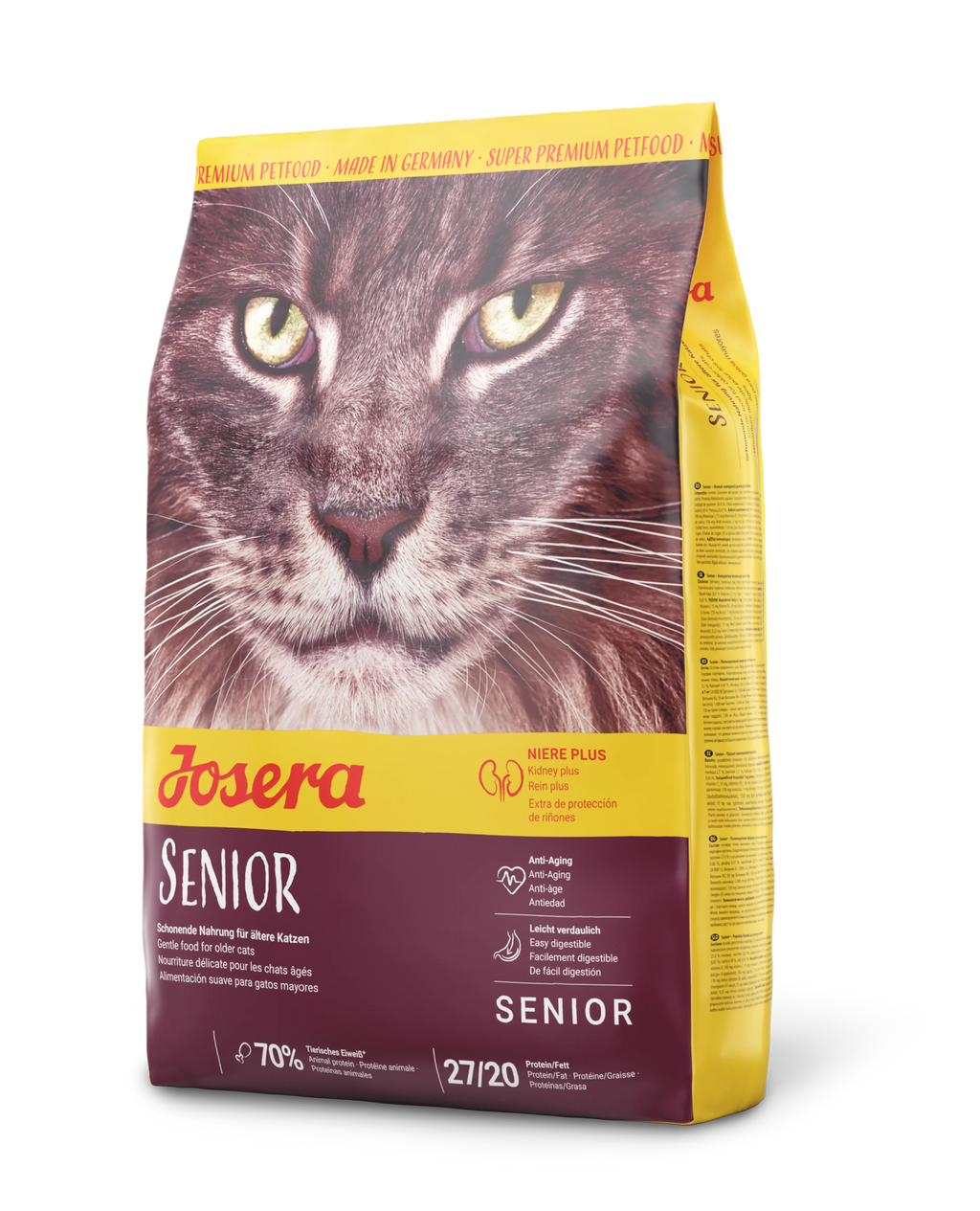 Josera Senior is formulated for mature cats, especially those experiencing reduced energy, mild kidney stress, or age-related muscle loss. It features reduced phosphorus content to support kidney health, along with antioxidants such as vitamins C & E and taurine to counter oxidative damage and cell aging.