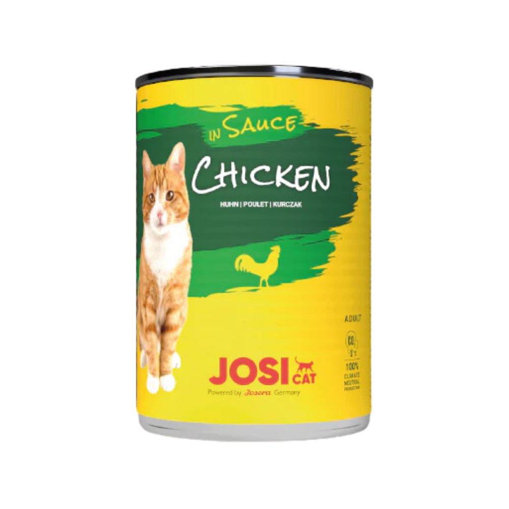Josicat Chicken in Sauce 415g is a complete wet cat food made for adult cats. Tender chicken pieces in a delicious sauce make it ideal for picky eaters. Enriched with Vitamin E for cell protection and Vitamin D3 to support strong bones. Also free from added preservatives, colourings, or flavourings.