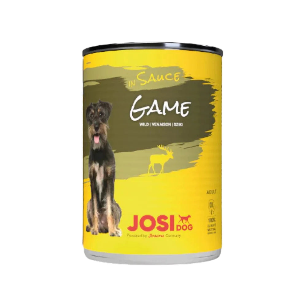 JosiDog Game in Sauce 415g is a premium wet dog meal featuring fine pieces in a rich sauce with 4.0% game. It includes added vitamins like Vitamin E for cell protection and Vitamin D3 to support strong bones. Free from artificial colourings, flavourings, and preservatives, this complete recipe delivers wholesome, balanced nutrition for your adult dog.