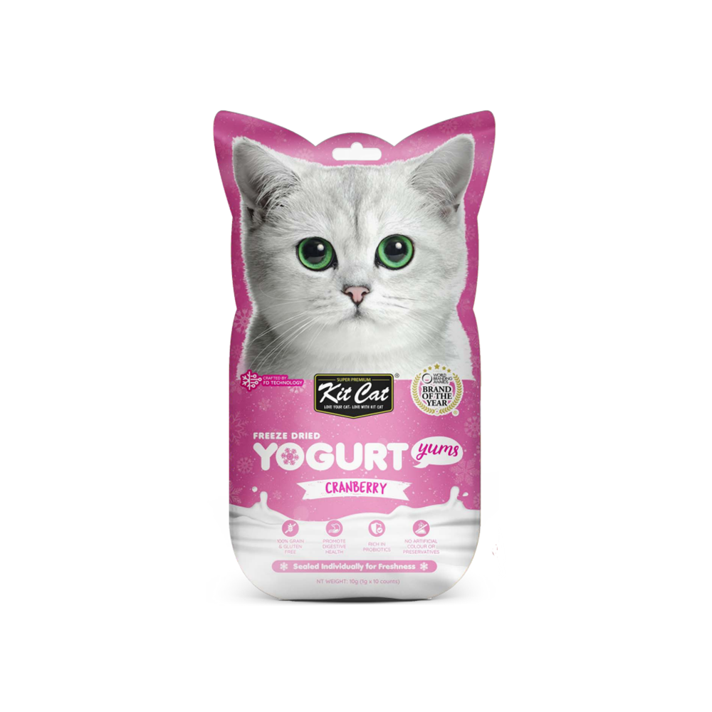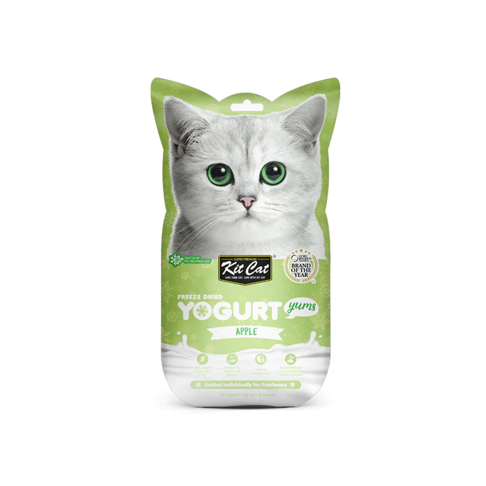 Kit Cat Frozen Dried Apple Flavored Yogurt Cat Equivalents 10 x 1 GramRecipe made with premium fresh freeze-dried ingredients.The light and crunchy snack will provide a delightful experience.Each one is individually sealed for maximum freshness.It contains added prebiotics to aid in digestion while strengthening the overall immune system.Promoting digestive healthRich in probioticsNutritional enhancer