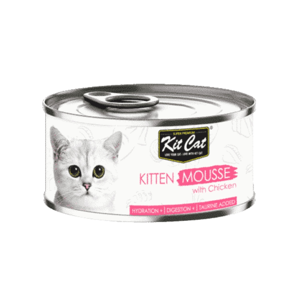 Kit Cat Kitten Mousse with Chicken 80g is a premium wet food specially formulated for growing kittens. Made with tender chicken in a smooth mousse texture, it provides high-quality protein to support healthy growth, muscle development, and energy. Enriched with vitamins, minerals, and taurine, it promotes eye health, immunity, and overall wellbeing. This recipe is grain-free and free from artificial colors or preservatives, making it gentle on young stomachs while delivering a taste kittens will love.