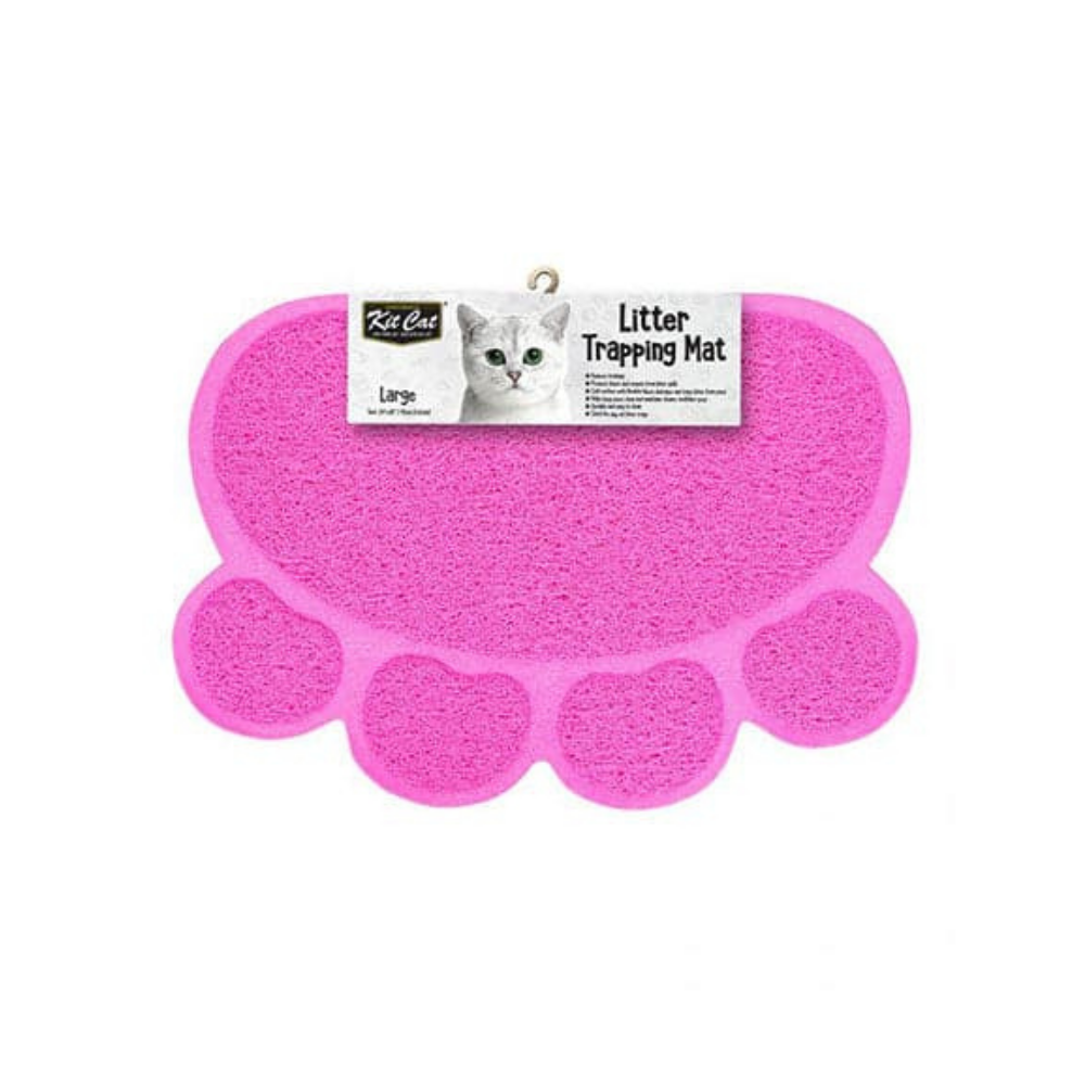 Kit Cat Litter Trapping Mat is a must have for every cat litter box, especially if you use paper, silica or clay litter.Not only does it protect your floor from litter spills and reduce litter tracking, Kit Cat Litter Trapping Mat is also durable and easy to clean. It is not uncommon for cats to get litter stuck in between their paw digits; this can be uncomfortable and even painful for them. Your cat will likely lick its paws in an attempt to get the litter out; this might cause your cat to accidentally ingest the litter.Kit Cat Litter Trapping Mat’s flexible fibers help prevent this by dislodging and trapping cat litter when your cat steps on it after using the litter box. Simply put it in front of any litter box, and voila! Its soft surface makes it comfortable for your cat to step on, and will help you maintain a clean, litter-free area where you won’t have to worry about stepping on a painful piece of litter.