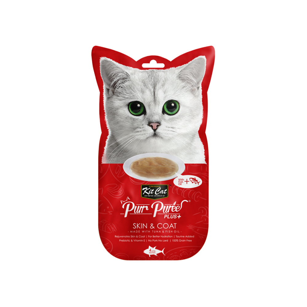 Kit Cat Puree Plus+ Tuna & Fish Oil Skin & Coat 4x15g are delicious creamy treats designed to support your cat’s skin and coat health. Made with real tuna and enriched with fish oil (rich in omega-3 and omega-6 fatty acids), they promote a shiny coat and healthy skin while delivering irresistible flavor. Each sachet is grain-free, low in calories, and free from artificial colors or preservatives, making it a healthy choice for cats of all ages. Perfect as a daily treat, food topper, or to encourage hydration.
