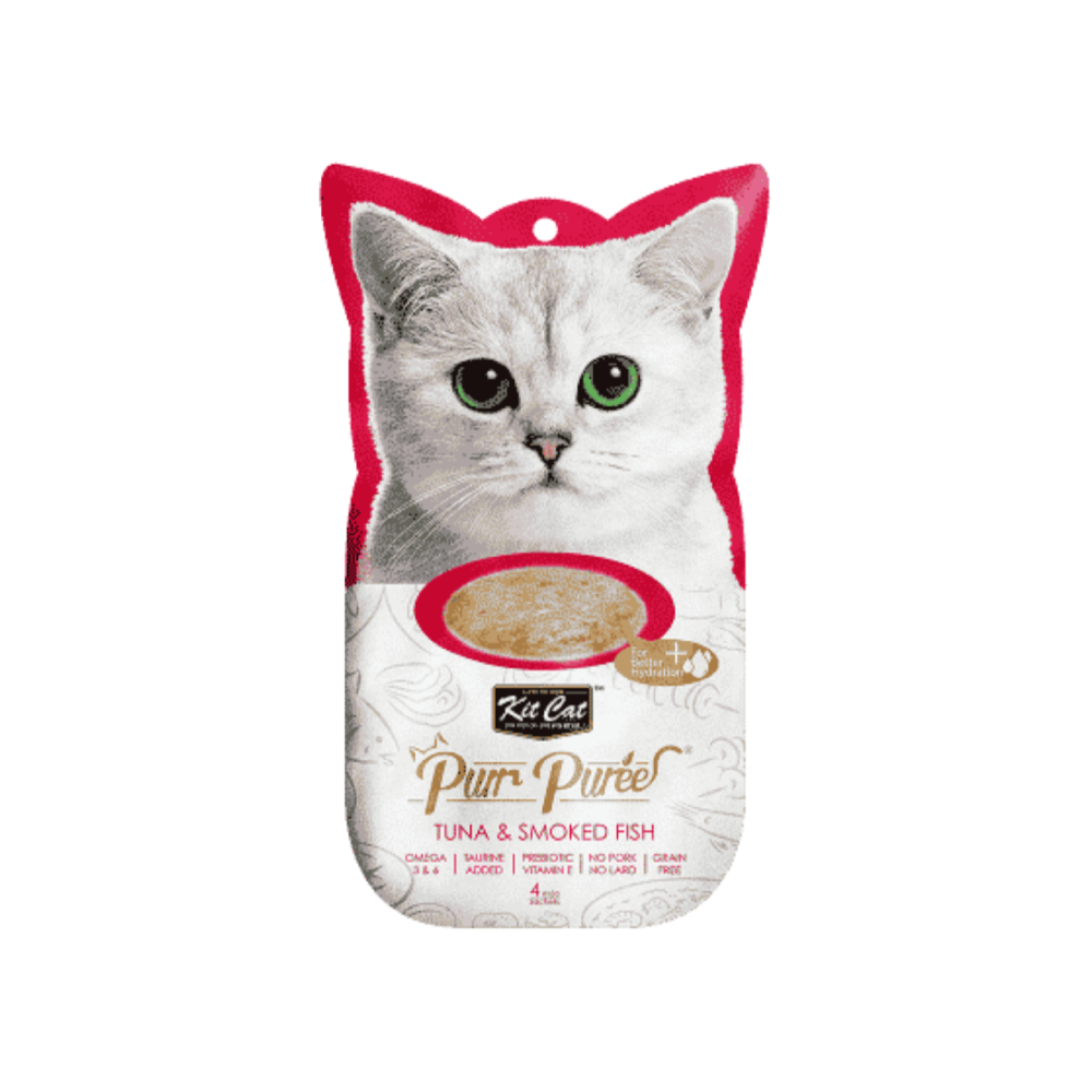 Kit Cat Purr Puree cat treats are created by nutritionists who are cat lovers and are made with goodness of carefully selected natural ingredients. This recipe contains a smooth blend of chicken or tuna. with no added colours or preservatives and is perfect for cats of all life stages. Grain-Free, delicious and 100% Natural – this will be the most irresistible and ideal treat your cat will crave.Omega 3 & 6Taurine AddedPrebiotic Vitamin ENo Pork No LardGrain Free