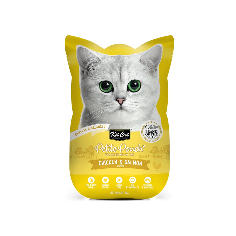 kitcat petite pouch complete food chicken salmon 70g