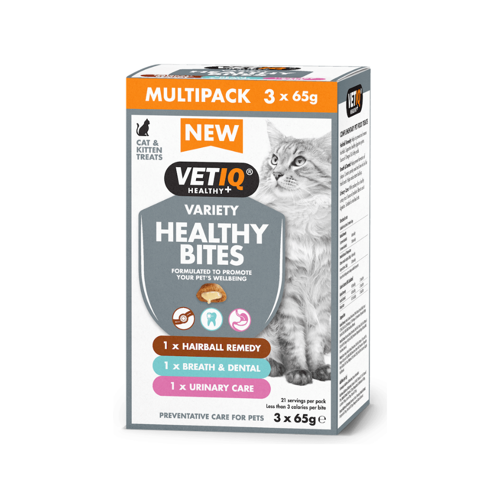 New VETIQ Healthy Bites variety packs for Cats & kittens are Formulated to promote your pet’s wellbeing in a digestible treat. The new variety pack contains 3 resealable packs of Cats and Kitten's most common ailments – Hairball Remedy, Breath and Dental care as well as Urinary care.