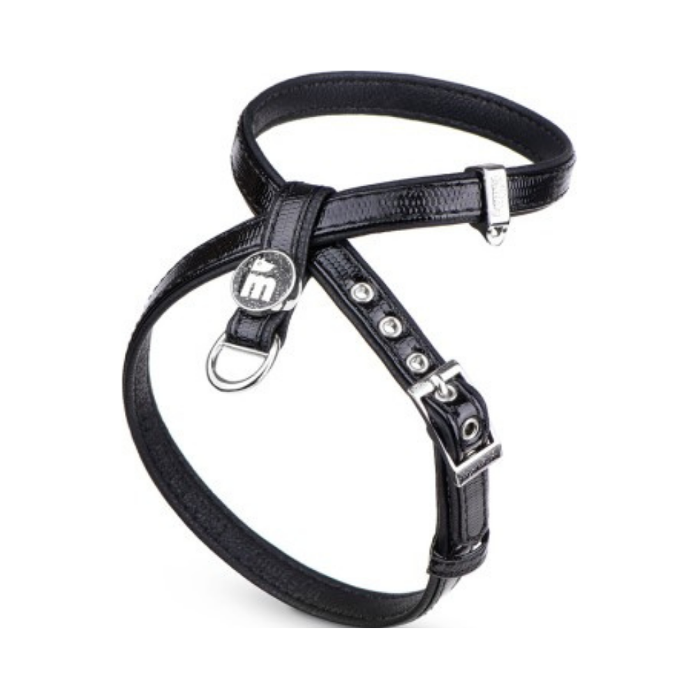 Dog X harness of the Saint Tropez collection in fine crafted black leatherette with white bronze finishing. S (38-44 cm / 15-17.3 in) 15 kg / 33 Lbs