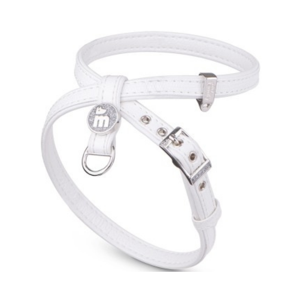 Dog X harness of the Saint Tropez collection in fine crafted white leatherette with white bronze finishing S (42-48 cm / 16.5-18.9) 15 kg / 33 Lbs