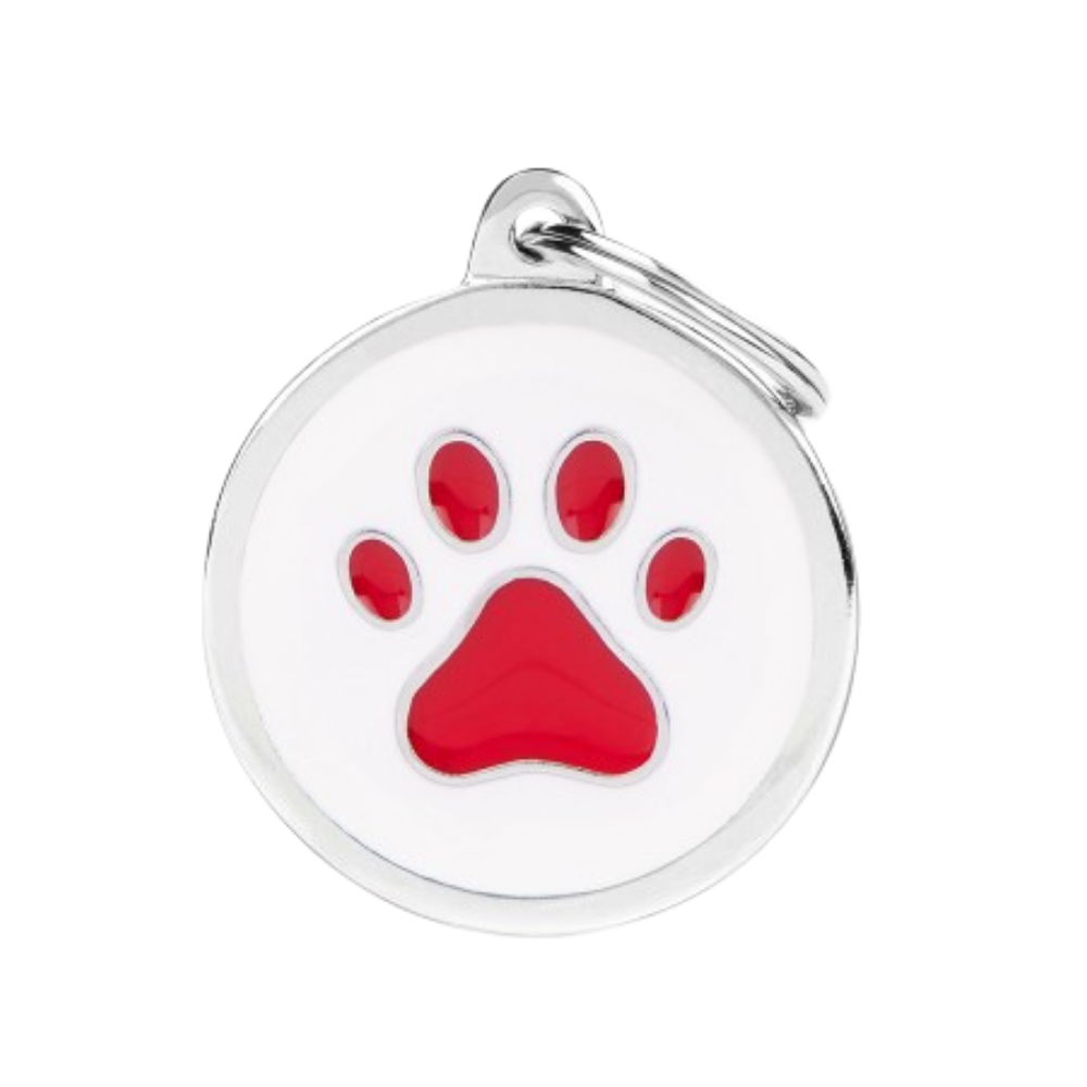 MF Tags BIG WHITE CIRCLE RED PAWThis necklace features an elegant and durable design, made of high quality materials.