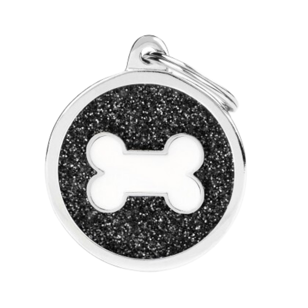 MF Tags BLACK BIG GLITTER CIRCLE WHITE BONEthat can be modified to suit you by adding four lines, and you can also write in Arabic