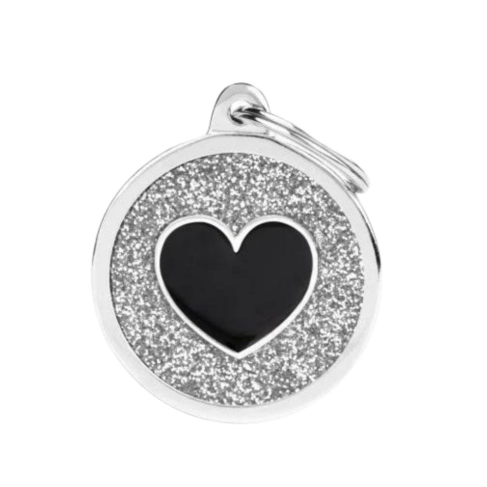MF Tags GREY BIG GLITTER CIRCLE BLACK HEARTthat can be modified to suit you by adding four lines, and you can also write in Arabic
