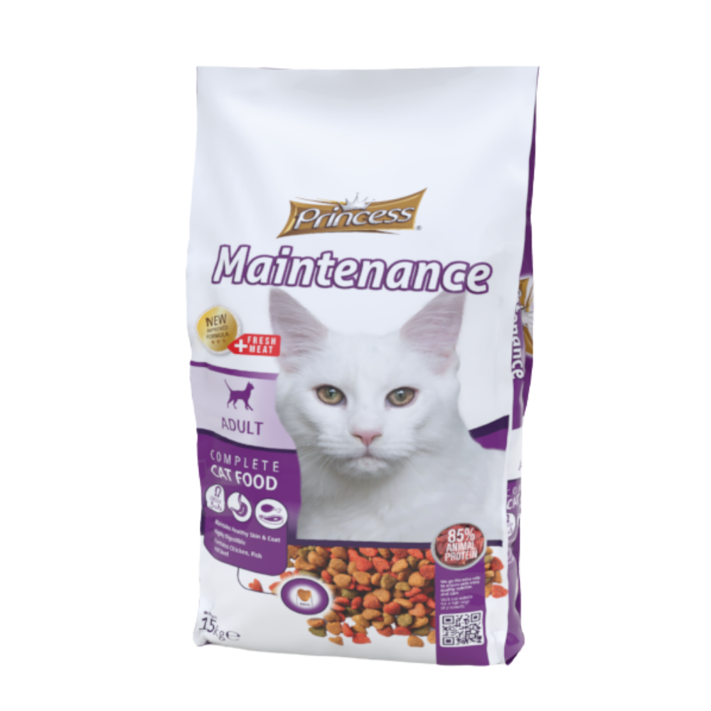 Princess Maintenance Complete Chicken 15KgAn integrated and balanced food for adult cats, which contains a high percentage of animal proteins extracted from chicken to support muscle health and provide energy. Rich in vitamins and essential minerals, promotes healthy skin and fur, and easy to digest to improve the absorption of nutrients.
