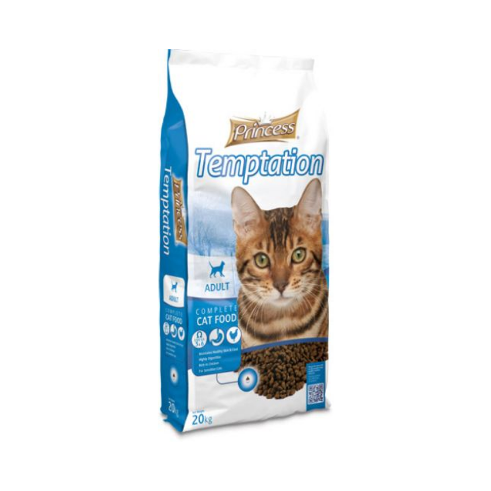 Princess Temptation 20Kg Dry Food for Adult Cats to support the health of the digestive system with chicken flavorDry, integrated food for cats with chicken flavor, designed to support the health of the digestive system and immunity, while enhancing the health of the skin and fur. It contains a perfect combination of proteins, vitamins, and minerals to meet your food cat's needs, which is easy to digest and suitable for cats with different tastes.