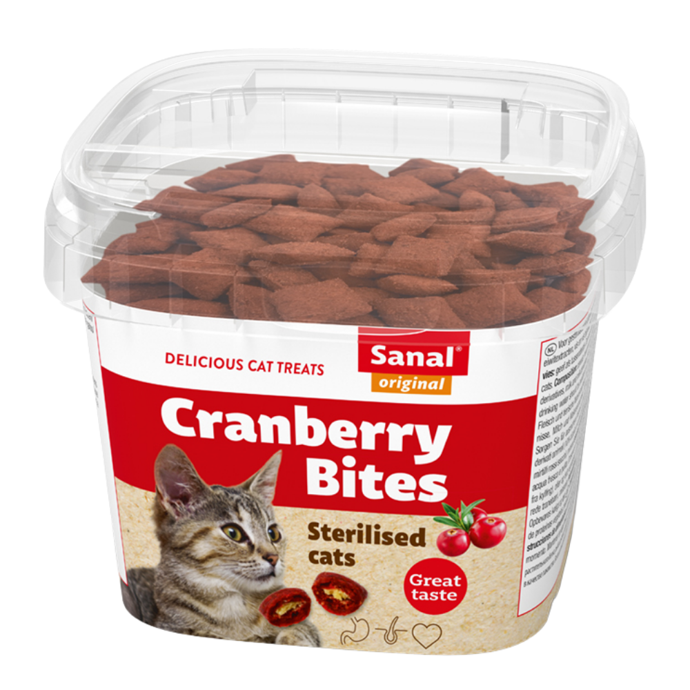 Sanal Bites specially developed for sterilised cats , Supports a healthy urinary tract are also available in the flavours: Malt Anti-Hairball Bites, Cheese Bites, Denta’s, Salmon Bites, Fish Bites, Joint Care and Fiesta.