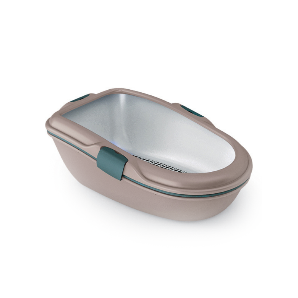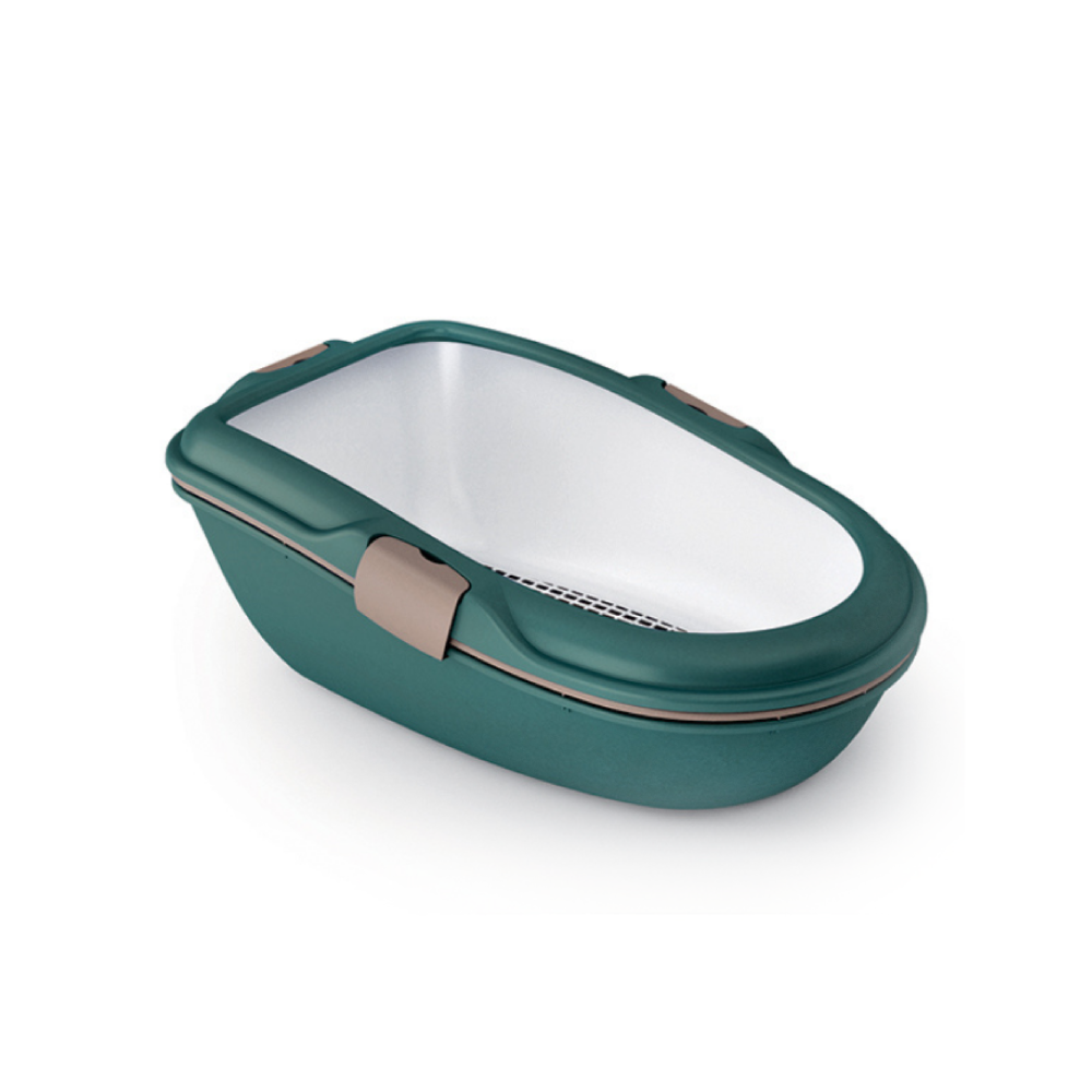 Innovative cat litter tray extra large version with self-cleaning sieve. It is large and spacious and made up of a sieve and two basins that quickly separate dirt without waste. Dimensions: cm 69,5x47x26h27,4"x18,5"x10,2"hColours: Granite/English GreenNE03/VD66