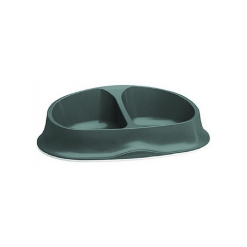 Funny bowl with anti-slip rubber rim, it consists of two comfortable and practical 0,25 lt compartments where it is possible to pour water and food or two different kind of food at the same time, for every need. Dimensions: cm 27x17,5x7,2h10,6"x6,9"x2,8"hColours: English GreenVD66Capacity: 0,25lt+0,25lt0,07gal+0,07gal