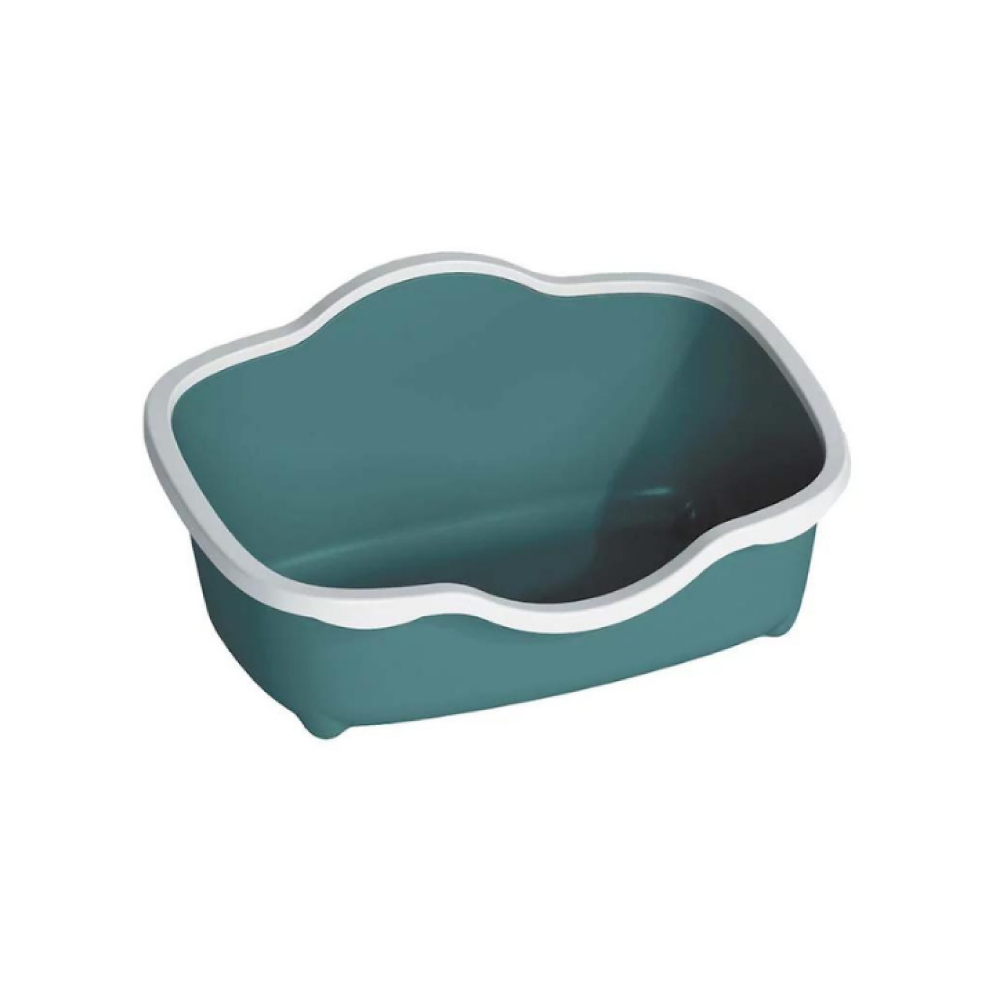 Spacious open cat toilet provided with high hygienic removable rim. Easy to clean. : 56x38,5x26h22"x15,2"x10,2"Colours: White/ Green BC01/GR16
