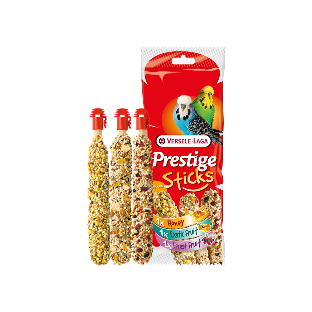 Versele Laga Prestige Sticks Budgies Triple Variety Pack 90gThey provide a variety of nutrients essential for overall health, including proteins, carbohydrates and fats. These sticks also contain the essential vitamins and minerals that canaries need for proper growth and development.It can be served as a snack or as part of a balanced diet. These sticks are an opportunity for canaries to have a different taste experience and enjoy delicious honey with important nutritional benefits.