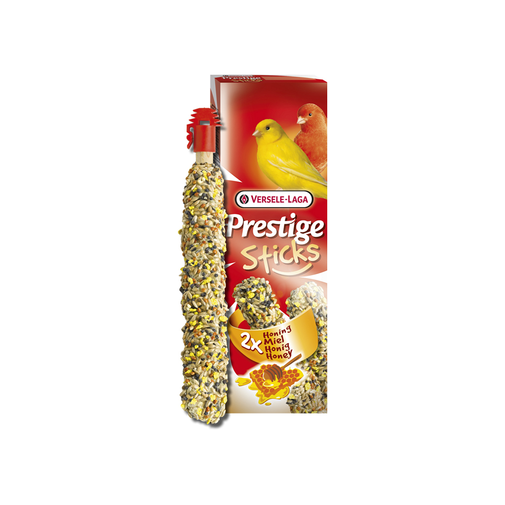Versele Laga Prestige Sticks Canaries Honey - 2 pcs 60gA delicious and nutritious meal specially designed for canaries. These sticks contain delicious honey, which enhances the canary's acceptance of them and encourages them to eat.It provides a variety of nutrients essential for canary health, including proteins, carbohydrates and fats. These sticks also contain the essential vitamins and minerals that canaries need for proper growth and development.It can be served as a snack to canaries or as part of a balanced diet. These sticks are an opportunity for canaries to have a different taste experience and enjoy delicious honey with important nutritional benefits.