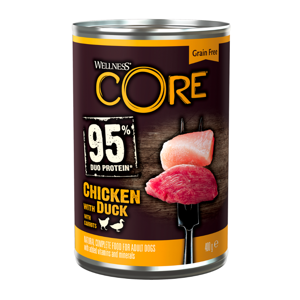ويلنس كور طعام رطب 95٪ بروتين مزدوج دجاج وبط للكلاب 400غ هو وجبة غنية بالبروتين من مصدرين عاليي الجودة، مصممة لتوفير تغذية طبيعية ومتوازنة تدعم صحة الكلاب ونشاطها اليومي.