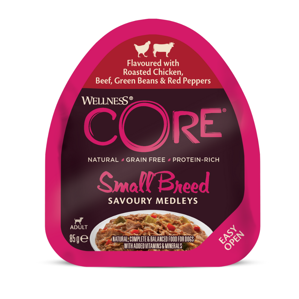 ويلنس كور طعام رطب بالدجاج ولحم البقر لفصائل الكلاب الSmallة 85غ هو وجبة غنية بالبروتين ومغذية، مصممة خصيصًا لتلبية احتياجات الكلاب الSmallة، بمكونات طبيعية عالية الجودة تدعم الصحة والطاقة.