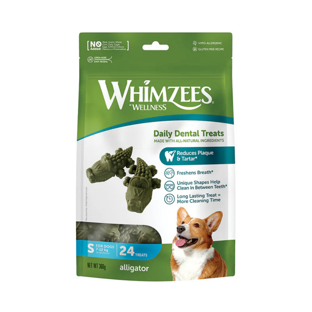 Wellness Whimzees Alligator Dental Treats 24pc for S Size Dogs 390g