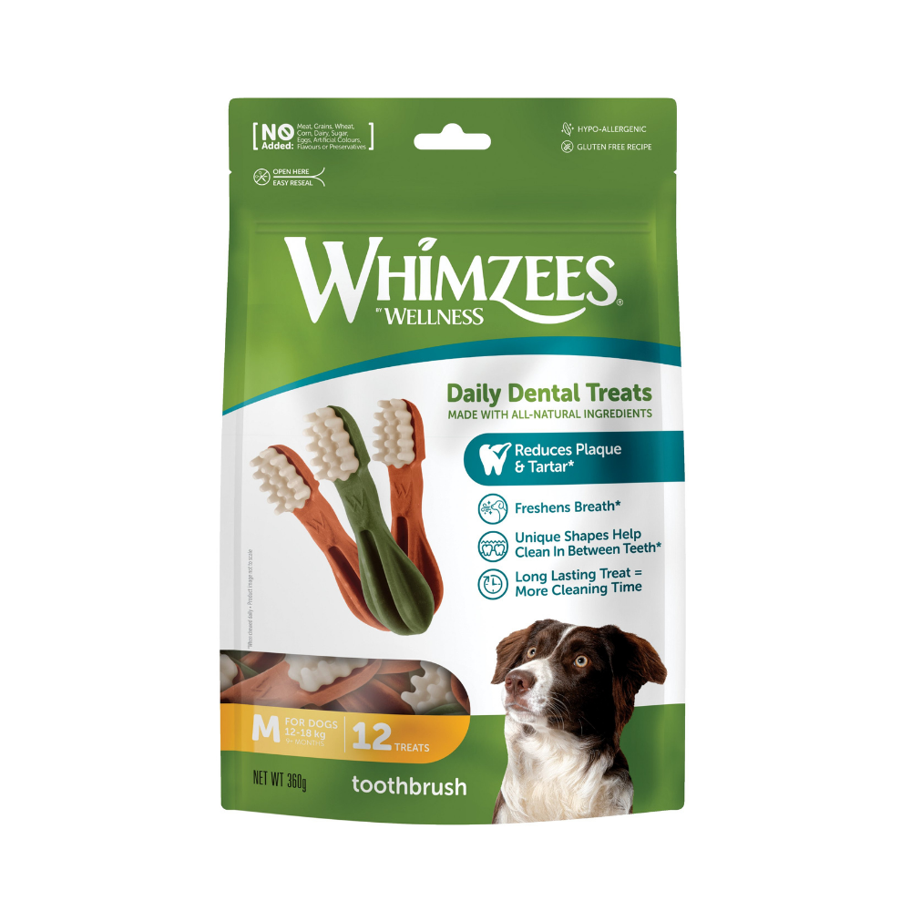 Wellness Whimzees Toothbrush Dental Treats 12pc for M Size Dogs 360g