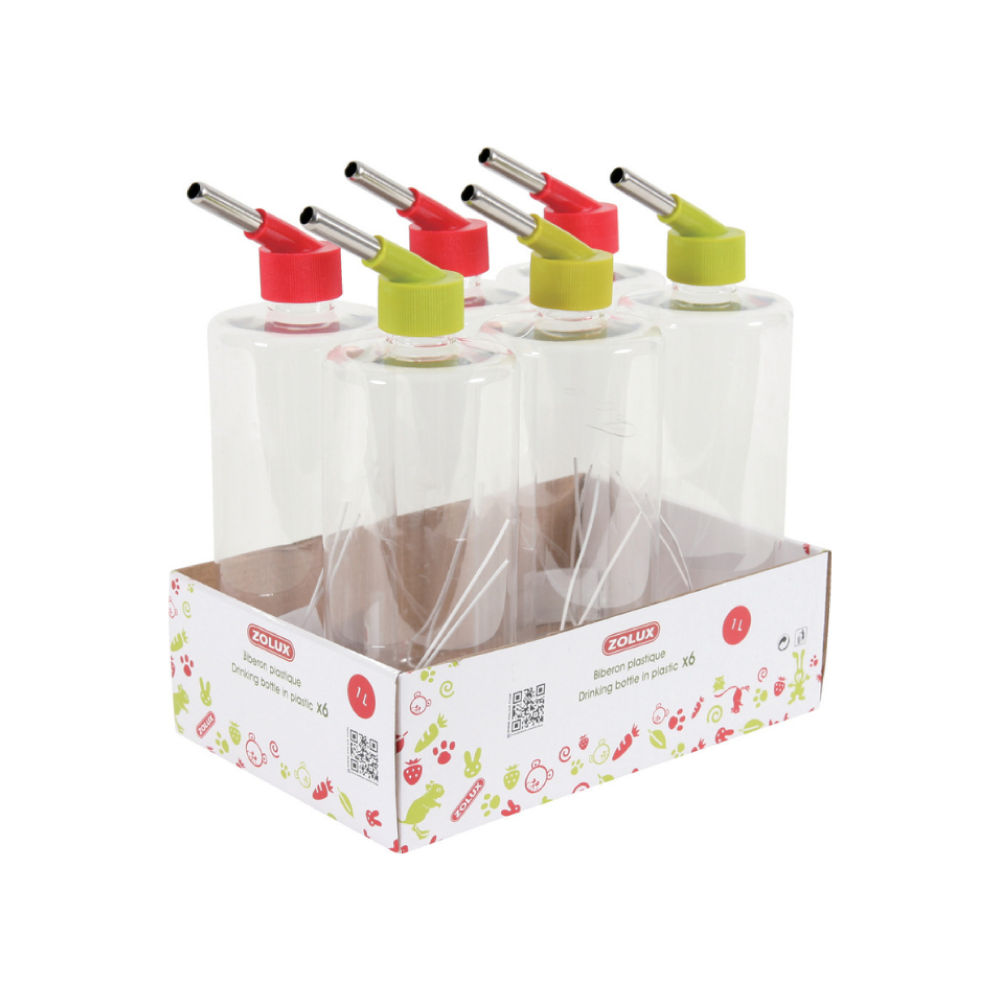 Zolux Drinking Plastic Bottle Red and Green 1L